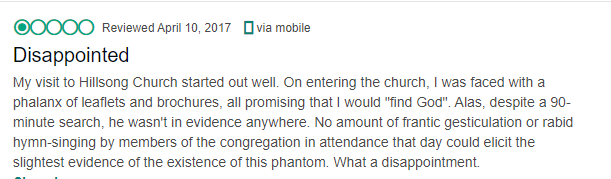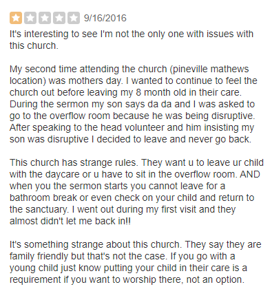 While a general rule of thumb is to never ignore negative church reviews, sometimes, they don’t require a response. For instance, a negative review in all caps that makes about as much sense as an infant talking to you, it’s okay to ignore this one.