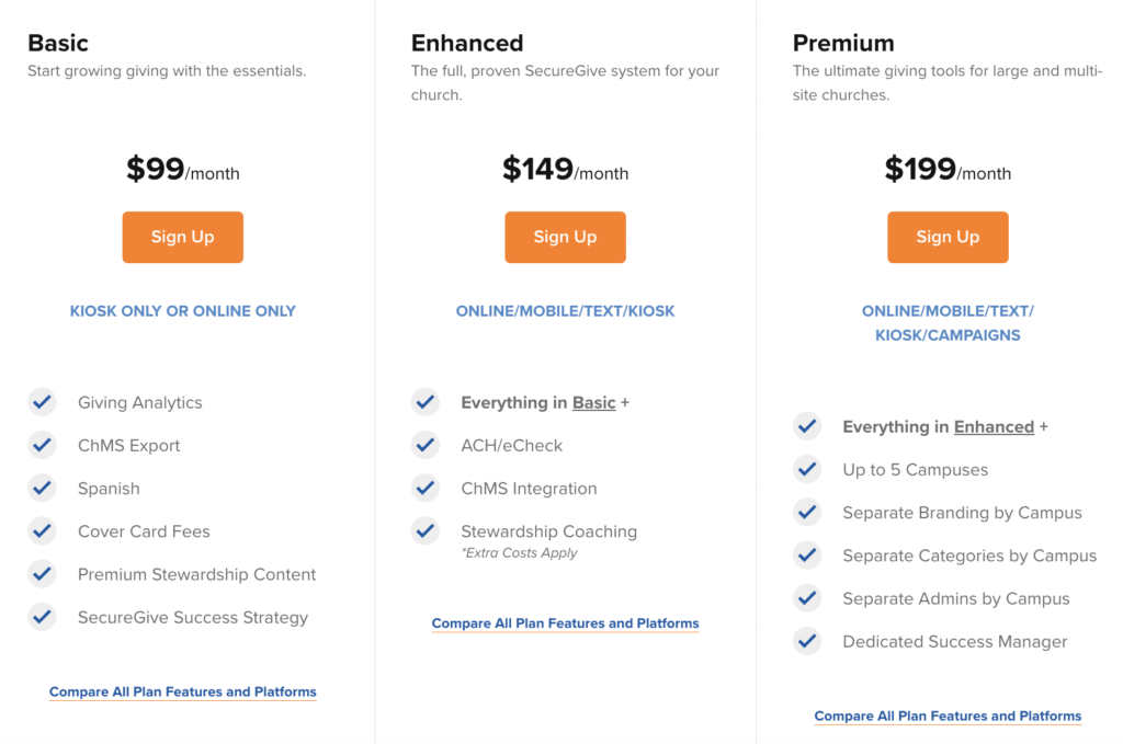 SecureGive Pricing Plans