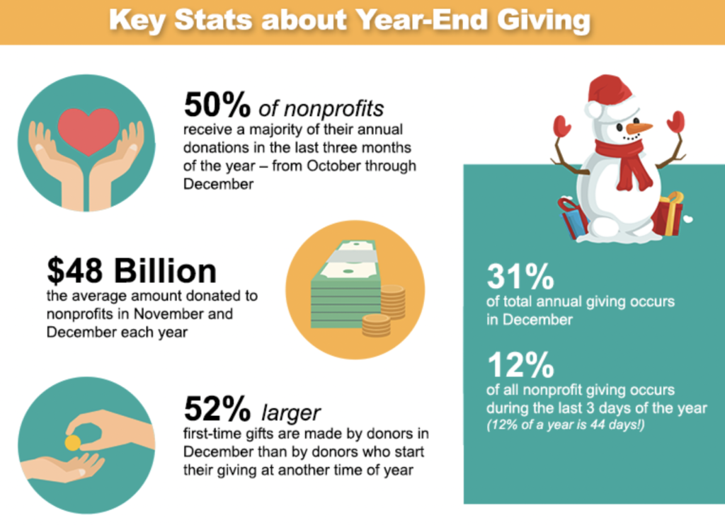 In order to have a successful donation drive or fundraiser, you need to talk it up for the entire month. And maybe communicate even further in advance! But also realize that November is a key giving month. November and December are typically the highest-giving months of the year.